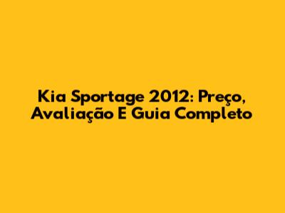 Kia Sportage 2012: Preço, Avaliação E Guia Completo
