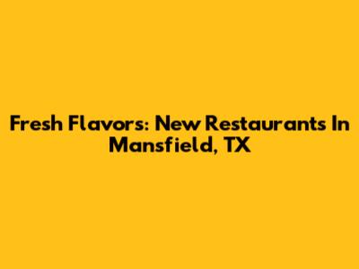Fresh Flavors: New Restaurants In Mansfield, TX