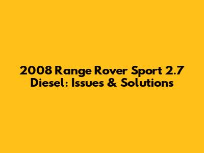 2008 Range Rover Sport 2.7 Diesel: Issues & Solutions