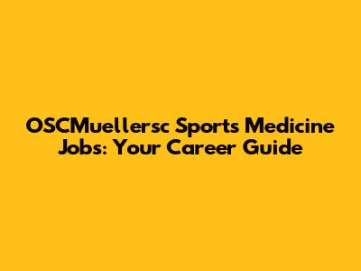 OSCMuellersc Sports Medicine Jobs: Your Career Guide