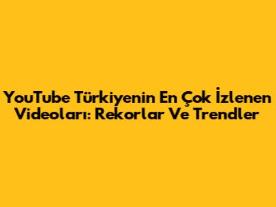 YouTube Türkiye'nin En Çok İzlenen Videoları: Rekorlar Ve Trendler