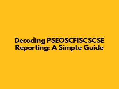 Decoding PSEOSCFISCSCSE Reporting: A Simple Guide