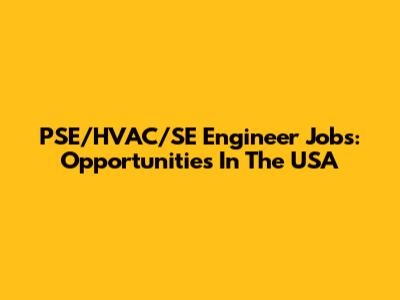 PSE/HVAC/SE Engineer Jobs: Opportunities In The USA