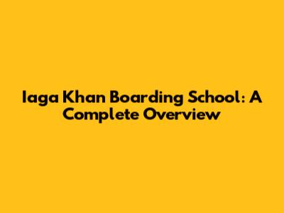 Iaga Khan Boarding School: A Complete Overview