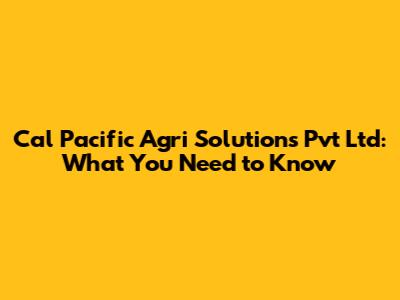 Understanding Cal Pacific Agri Solutions Pvt Ltd