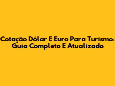 Cotação Dólar E Euro Para Turismo: Guia Completo E Atualizado
