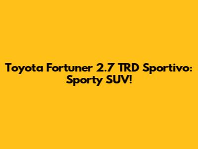 Toyota Fortuner 2.7 TRD Sportivo: Sporty SUV!