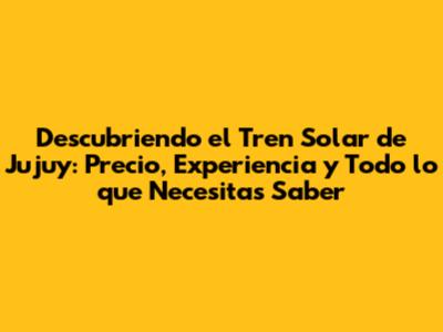 ¡Hola a todos los entusiastas de los viajes y la energía solar! ¿Alguna vez se han preguntado cuánto está el tren solar jujuy y qué ofrece esta increíble experiencia? Pues, ¡están en el lugar correcto! En este artículo, vamos a sumergirnos en todos los detalles sobre el Tren Solar de Jujuy, desde sus precios y recorridos hasta cómo planificar su visita y las experiencias que les esperan. Prepárense para un viaje lleno de información útil y consejos para que su aventura en el tren solar sea inolvidable.