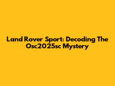 Land Rover Sport: Decoding The Osc2025sc Mystery