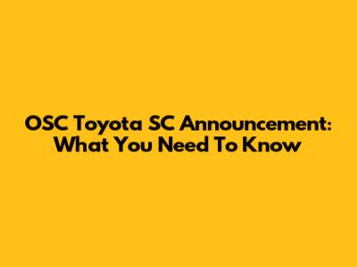 OSC Toyota SC Announcement: What You Need To Know