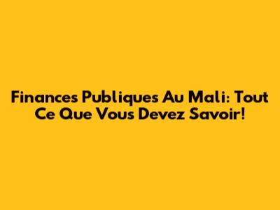Finances Publiques Au Mali: Tout Ce Que Vous Devez Savoir!