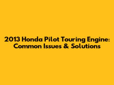 2013 Honda Pilot Touring Engine: Common Issues & Solutions