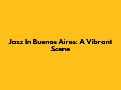 Jazz In Buenos Aires: A Vibrant Scene