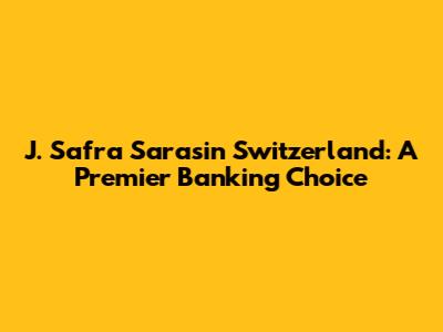 J. Safra Sarasin Switzerland: A Premier Banking Choice