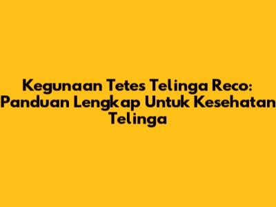 Kegunaan Tetes Telinga Reco: Panduan Lengkap Untuk Kesehatan Telinga