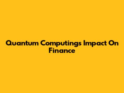 Quantum Computing's Impact On Finance
