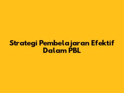 Strategi Pembelajaran Efektif Dalam PBL