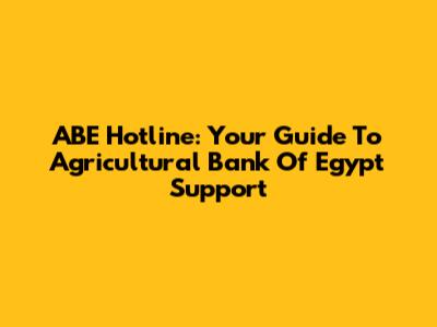 ABE Hotline: Your Guide To Agricultural Bank Of Egypt Support