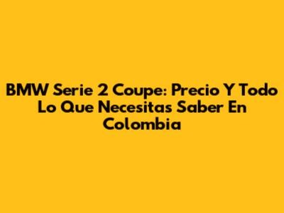 BMW Serie 2 Coupe: Precio Y Todo Lo Que Necesitas Saber En Colombia