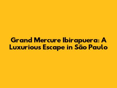Hey guys, if you're looking for a top-notch hotel experience in the heart of São Paulo, look no further than the Grand Mercure Ibirapuera. This place is a real gem, offering a perfect blend of luxury, comfort, and convenience. Whether you're in town for business or pleasure, this hotel has got you covered. It's the ideal spot for a staycation, a romantic getaway, or a base for exploring everything São Paulo has to offer. I'm going to take you on a deep dive, breaking down everything you need to know about this fantastic hotel, from its awesome location and stylish rooms to its killer amenities and overall vibe. Get ready to discover why the Grand Mercure Ibirapuera should be at the top of your list for your next trip to this amazing city!