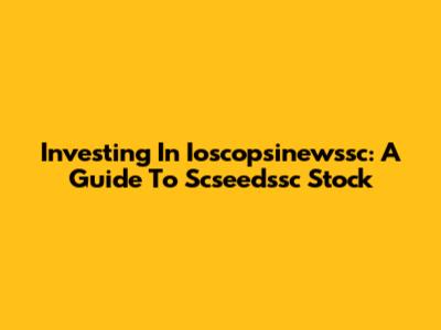 Investing In Ioscopsinewssc: A Guide To Scseedssc Stock