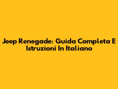 Jeep Renegade: Guida Completa E Istruzioni In Italiano