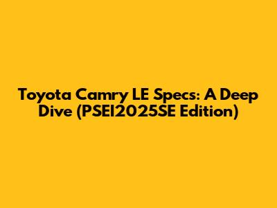 Toyota Camry LE Specs: A Deep Dive (PSEI2025SE Edition)