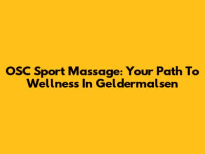 OSC Sport Massage: Your Path To Wellness In Geldermalsen