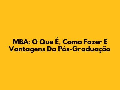 MBA: O Que É, Como Fazer E Vantagens Da Pós-Graduação
