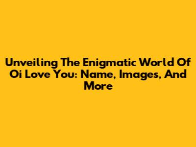 Unveiling The Enigmatic World Of 'Oi Love You': Name, Images, And More