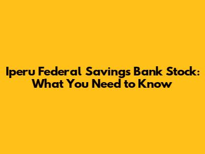 Are you looking to dive into the world of Iperu Federal Savings Bank stock? Or perhaps you're just curious about what it entails? Either way, you've come to the right place. This article will serve as your comprehensive guide, providing you with all the essential information you need to understand Iperu Federal Savings Bank stock. We'll cover everything from its basic overview to factors influencing its performance, and even how to invest (if that's your goal!). So, buckle up and let's get started!