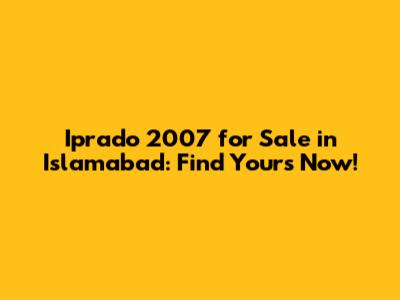 Hey guys! Are you on the hunt for an Iprado 2007 for sale in Islamabad? Well, you've come to the right place! Finding the perfect vehicle can be a thrilling yet challenging journey. Whether you're looking for a reliable family car, an off-road adventure companion, or simply a stylish ride, the Iprado 2007 might just be the answer. Islamabad, with its scenic routes and bustling urban life, demands a vehicle that can handle both with ease. Let’s dive deep into what makes the Iprado 2007 a great choice, what to look for when buying one in Islamabad, and how to ensure you get the best deal possible. Getting your hands on a used car requires some smart moves, especially in a vibrant market like Islamabad. You want to make sure you're not just getting a set of wheels, but an investment that will serve you well for years to come. From understanding the vehicle's history to inspecting its mechanical condition, we'll cover all the essential aspects to guide you through a smooth and confident purchase. So, buckle up and get ready to explore the world of Iprado 2007 in Islamabad!
