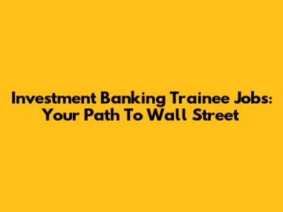 Investment Banking Trainee Jobs: Your Path To Wall Street