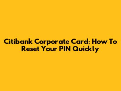 Citibank Corporate Card: How To Reset Your PIN Quickly