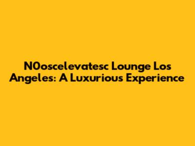 N0oscelevatesc Lounge Los Angeles: A Luxurious Experience