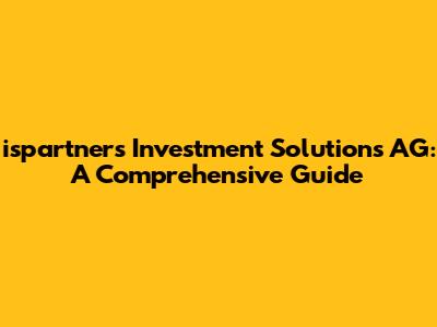 Hey there, finance enthusiasts! Ever heard of ispartners Investment Solutions AG? If you're navigating the complex world of investments, this is a name you might want to know. Today, we're diving deep into what makes ispartners tick, exploring its services, and uncovering what sets them apart in the financial landscape. Think of this as your go-to guide, breaking down the jargon and giving you the lowdown on this intriguing firm. Ready to get started, guys?