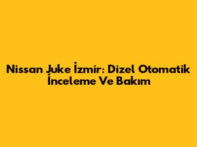 Nissan Juke İzmir: Dizel Otomatik İnceleme Ve Bakım