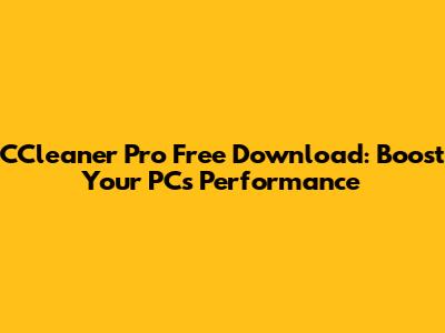 CCleaner Pro Free Download: Boost Your PC's Performance