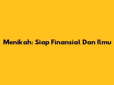Menikah: Siap Finansial Dan Ilmu