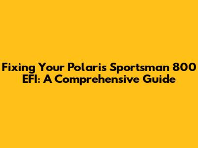 Fixing Your Polaris Sportsman 800 EFI: A Comprehensive Guide