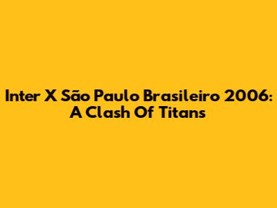Inter X São Paulo Brasileiro 2006: A Clash Of Titans