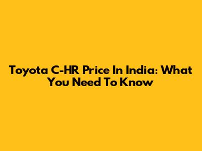 Toyota C-HR Price In India: What You Need To Know