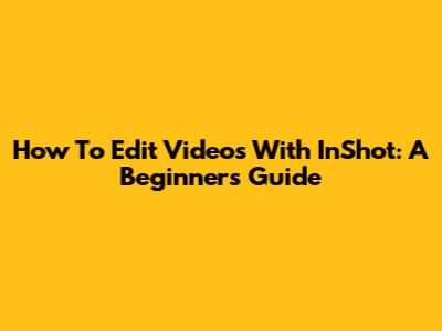 How To Edit Videos With InShot: A Beginner's Guide