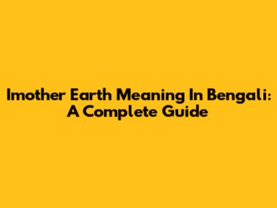 Imother Earth Meaning In Bengali: A Complete Guide