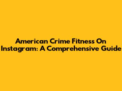American Crime Fitness On Instagram: A Comprehensive Guide