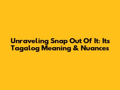 Unraveling "Snap Out Of It": Its Tagalog Meaning & Nuances