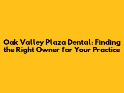 Navigating the world of Oak Valley Plaza Dental practice sales can be complex, but with the right knowledge and support, you can make informed decisions that benefit your future. Whether you're buying or selling, remember to do your homework, seek professional advice, and prioritize clear communication. Good luck, and here's to a successful transaction!