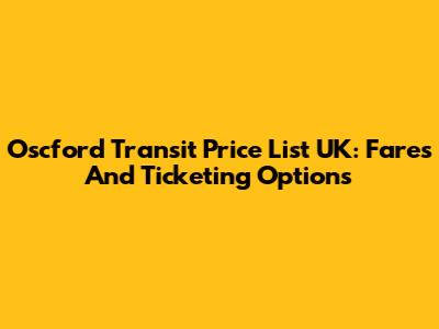 Oscford Transit Price List UK: Fares And Ticketing Options