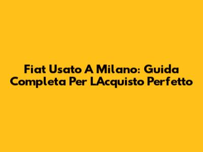 Fiat Usato A Milano: Guida Completa Per L'Acquisto Perfetto
