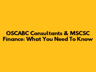 OSCABC Consultants & MSCSC Finance: What You Need To Know